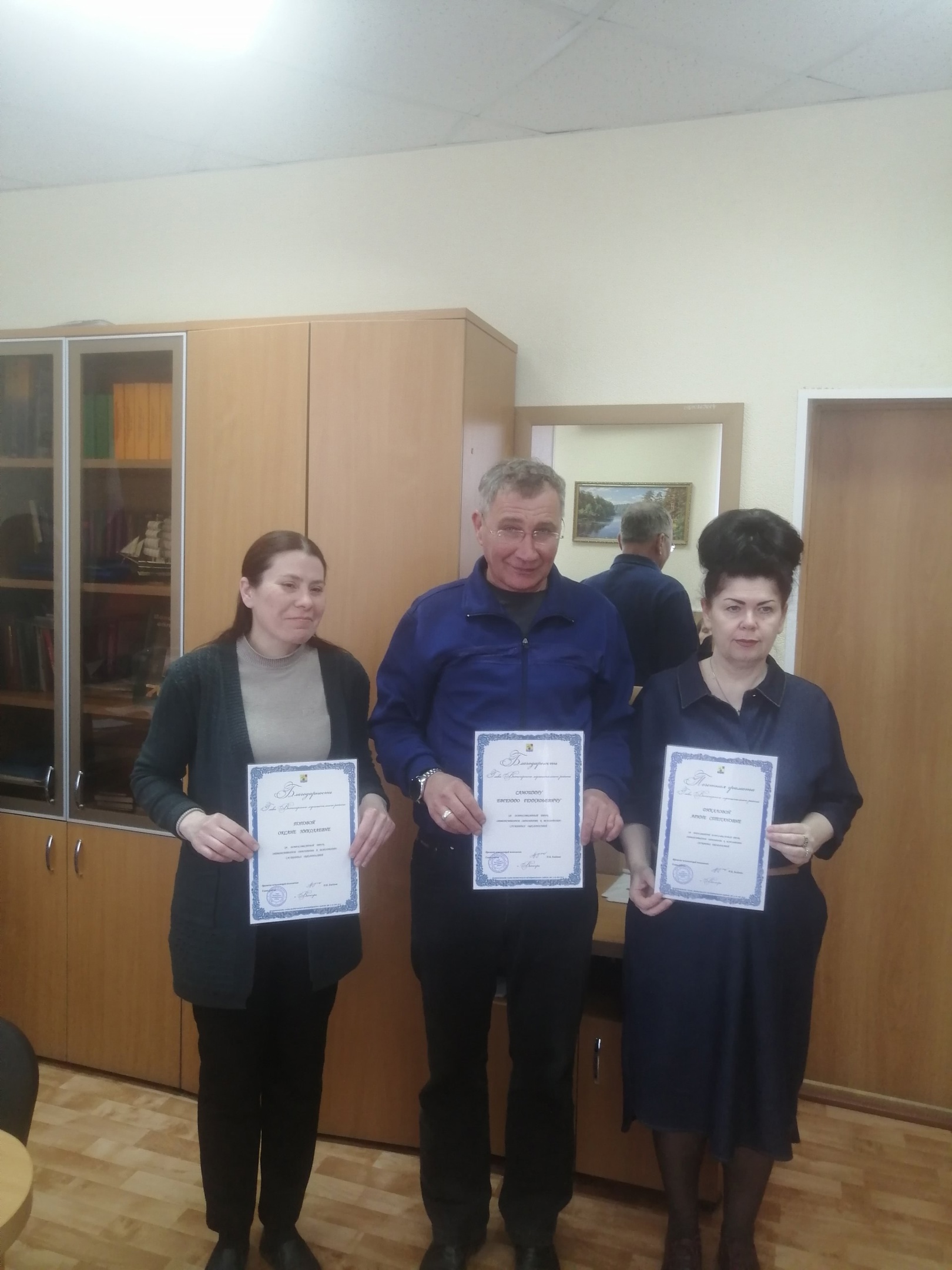 «В преддверии государственного праздника «День труда и весны – 1Мая» в торжественной обстановке вручены награды работникам аппарата Вытегорского районного суда и персоналу по охране и обслуживанию здания Вытегорского районного суда Вологодской области. За добросовестный труд, ответственное отношение к исполнению служебных обязанностей объявлена Благодарность Главы Вытегорского муниципального района Поповой Оксане Николаевне, сторожу Вытегорского районного суда, Самошину Евгению Геннадьевичу, курьеру Вытегорского районного суда. За многолетний добросовестный труд, ответственное отношение к исполнению служебных обязанностей Почетной грамотой Главы Вытегорского муниципального района награждена Дикалова Арина Степановна, секретарь судебного заседания Вытегорского районного суда. Коллектив Вытегорского районного суда поздравляет Самошина Е.Г., Попову О.Н. и Дикалову А.С. с заслуженной наградой и желает дальнейших успехов в работе.