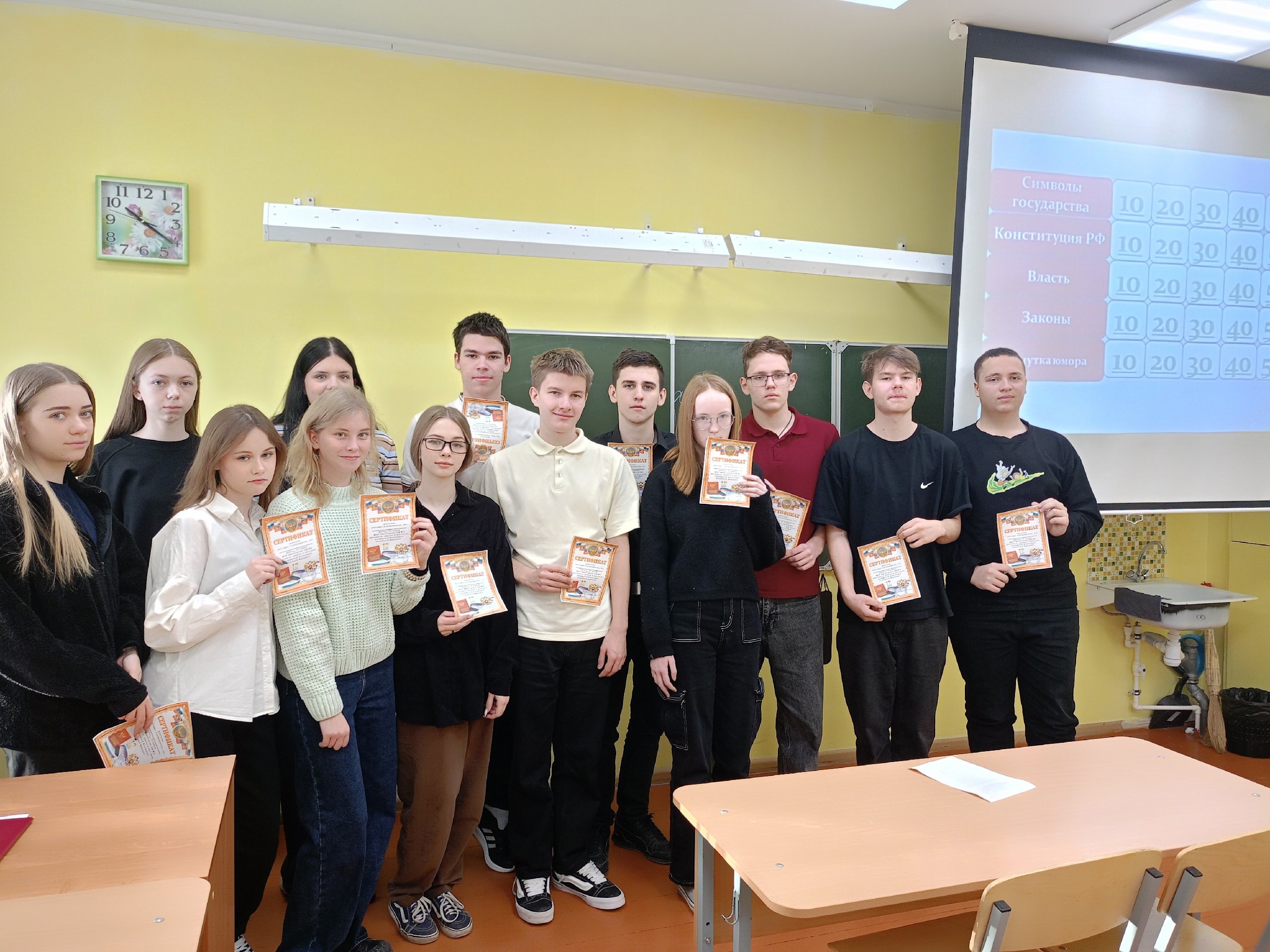 22 ноября 2024 года в рамках региональной программы «Знакомьтесь: судебная система Вологодской области» работники Вытегорского районного суда в преддверии Дня Конституции посетили МБОУ «Средняя общеобразовательная школа №1 г.Вытегры», где для учеников 10 класса провели урок, посвящённый основному закону нашей страны – Конституции Российской Федерации. В основу урока была положена история принятия Конституции Российской Федерации. Особое внимание было уделено изменениям и поправкам в действующую Конституцию Российской Федерации, а также интересным фактам. После теоретической части с ребятами была проведена игра в виде викторины на предмет знания основного закона нашей страны. Ученики поделились на две команды, которым они придумали интересные названия «Звезда» и «Большевики». Отвечая на вопросы викторины, ребята не растерялись, отвечали быстро, уверенно и правильно. По окончании мероприятия всем ребятам на память были вручены именные сертификаты участника викторины, посвященной Конституции Российской Федерации, а учителям Патраковой Л.И. и Фатькиной Е.М - благодарности за помощь в организации проведения мероприятия. Также было решено продолжить знакомство с судебной системой в здании суда. |