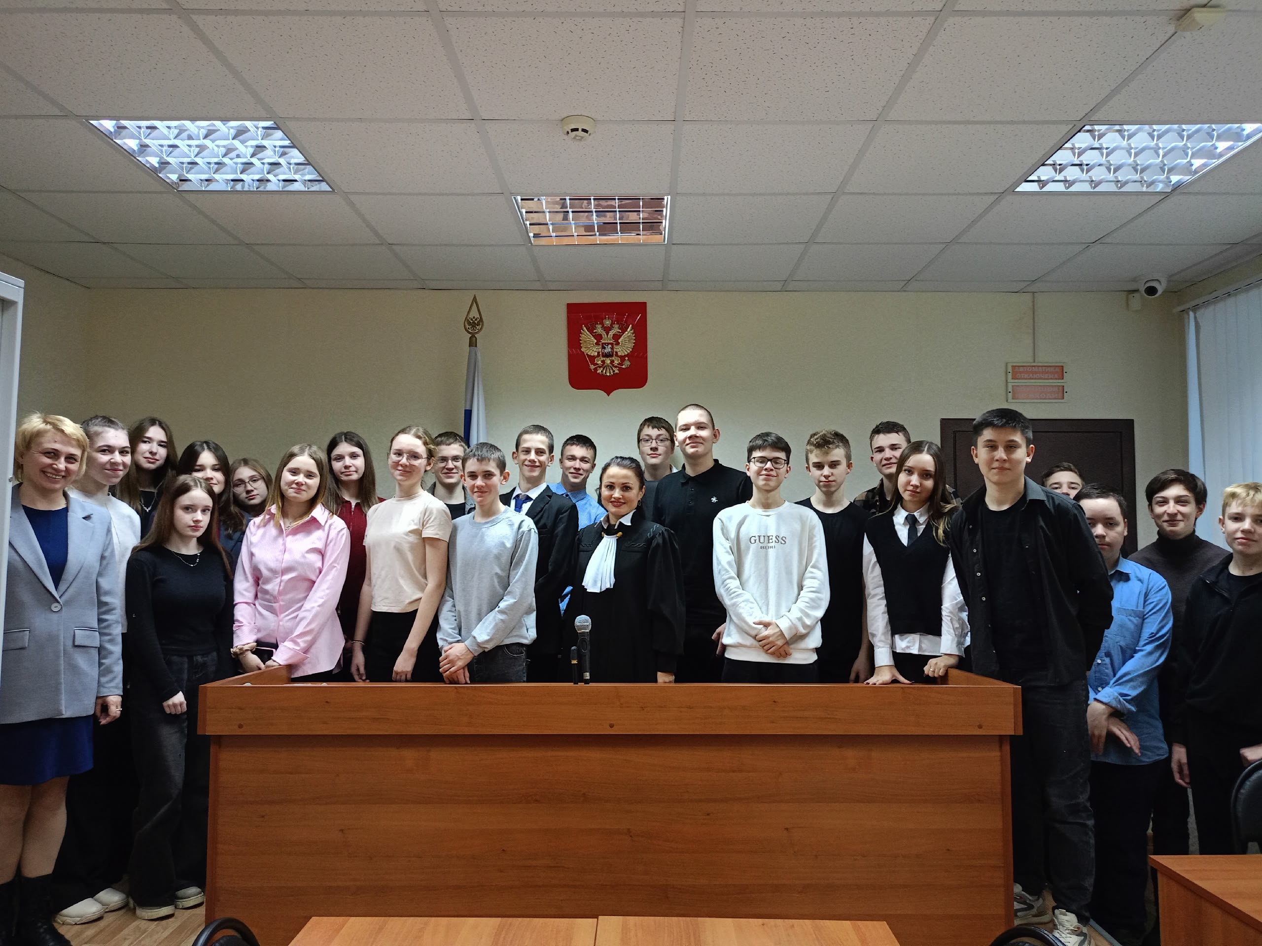 В Вытегорском районном суде 24 ноября 2025 года в рамках региональной программы правового просвещения и формирования у молодежи положительного образа судебной системы «Знакомьтесь: судебная система Вологодской области» проведена встреча с учащимися 9 класса МБОУ «Вытегорская СОШ № 1». Данное мероприятие направлено на правовое просвещение и повышение правовой грамотности учащихся старших классов школ. Администратор суда Кондрат Т.Д. провела для ребят экскурсию по зданию суда. Рассказала им о структуре суда, о символах государственной власти, располагающихся в суде, об обязанностях судебных приставов по поддержанию порядка в суде. Двадцать шесть учеников в сопровождении педагога стали слушателями открытого судебного процесса по рассмотрению дела о возмещении ущерба, причиненного в результате дорожно-транспортного происшествия, в порядке суброгации. Перед учащимися выступил представитель Стрельников Р.Ю., который прокомментировал свое участие в данном деле, поделился своей практикой рассмотрения дел данной категории и посоветовал ребятам не нарушать правила дорожного движения. Для любого будущего юриста, очень важно посетить судебное заседание, для того чтобы увидеть как проходит судебное разбирательство. В процессе разрешения дела ребята увидели, в каком порядке проходит судебное разбирательство, как должны звучать формулировки искового требования, как выступают участники суда, а также какого поведения должны придерживаться присутствующие. Судья Конева Наталья Николаевна ответила на интересующие вопросы ребят, рассказала о своем пути в данную профессию, о интересных делах, рассмотренных ею за период работы. Целью данных мероприятий является взаимодействие суда с образовательными учреждениями, формирования у учащихся правосознания, позитивного отношения к российской судебной системе, уважительного отношения к закону, профилактики правонарушений среди подростков и дополнительное профессиональное ориентирование. ![]() |